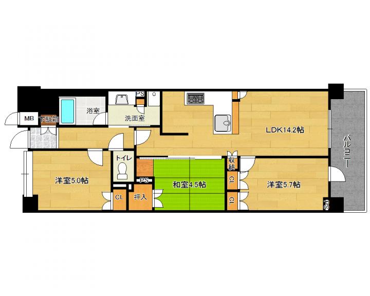 | 間取り詳細 | 和4.5帖 洋5.7帖 洋5.0帖 LDK14.2帖 |