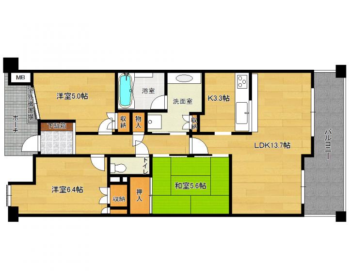 | 間取り詳細 | 和5.6帖 洋6.4帖 洋5.4帖 LD13.7帖 K3.3帖 |