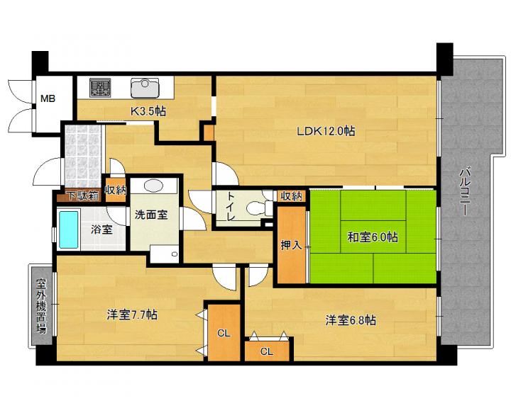 | 間取り詳細 | 和6.0帖 洋7.7帖 洋6.8帖 LD12.0帖 K3.5帖 |
