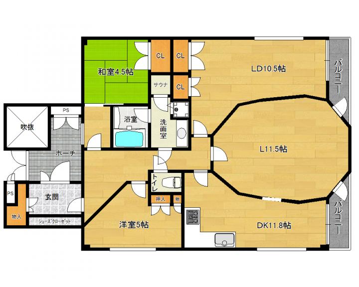| 間取り詳細 | 和4.5帖 洋10.5帖 洋7.2帖 L11.5帖 DK11.8帖 |