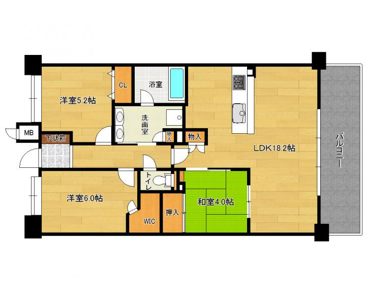 | 間取り詳細 | 和4.0帖 洋6.0帖 洋5.2帖 LDK18.2帖 |