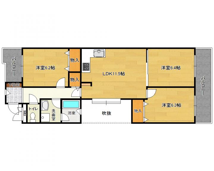 | 間取り詳細 | 洋6.4帖 洋6.3帖 洋6.2帖 LDK11.5帖 |