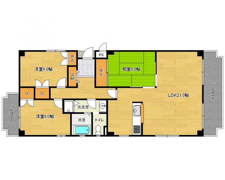 | 間取り詳細 | 和6.0帖 洋6.0帖 洋6.0帖 LDK21.0帖 |