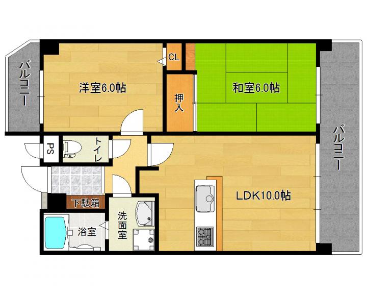 | 間取り詳細 | 和6.0帖 洋6.0帖 LDK10.0帖 |