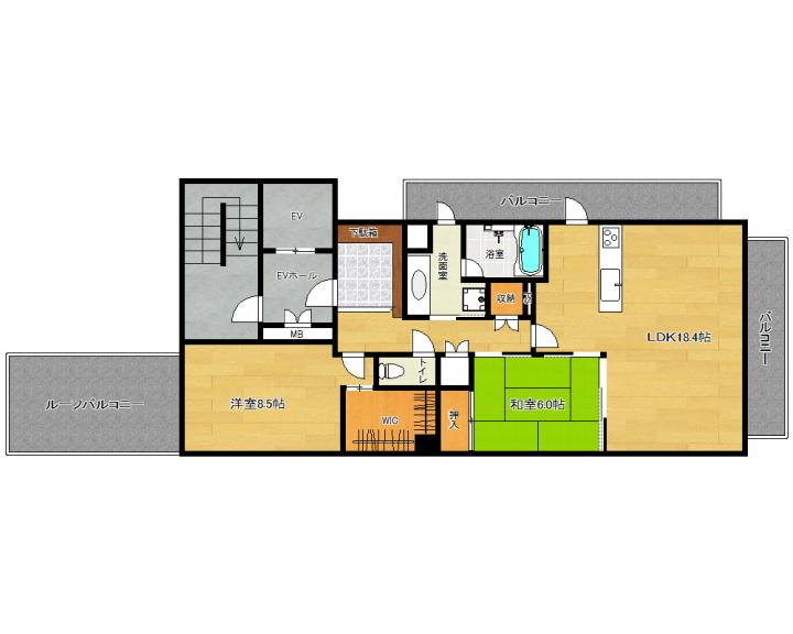 | 間取り詳細 | 和6.0帖 洋8.5帖 LDK18.4帖 |