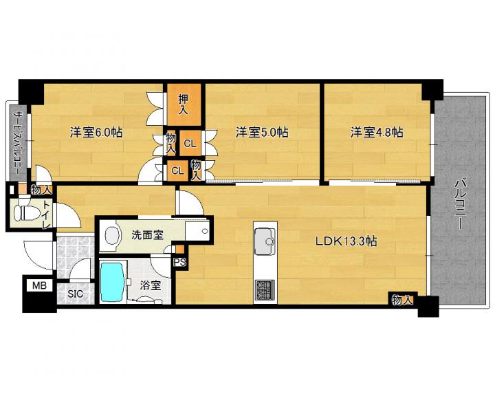 | 間取り詳細 | 洋6.0帖 洋5.0帖 洋4.8帖 LDK13.3帖 |