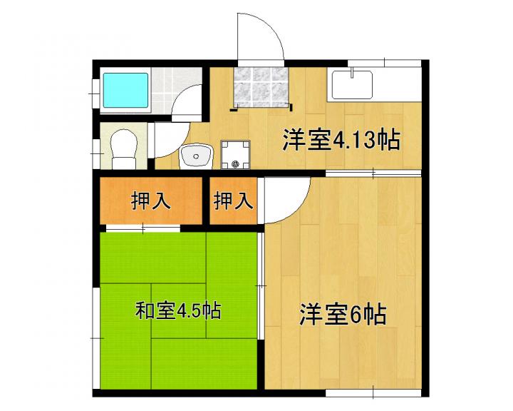 二部屋ともに南向き採光良しの2DK。貴重です。