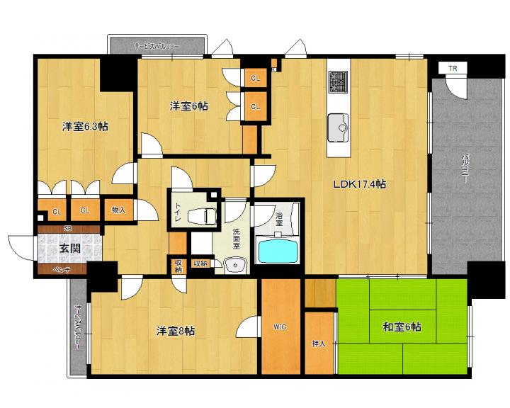 | 間取り詳細 | 洋8帖 洋6.3帖 洋6帖 和6帖 LDK174帖 |