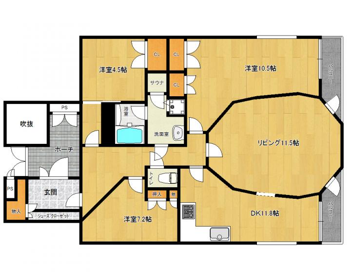 | 間取り詳細 | 洋10.5帖 洋7.2帖 和4.5帖 L11.5帖 DK11.8帖 |
