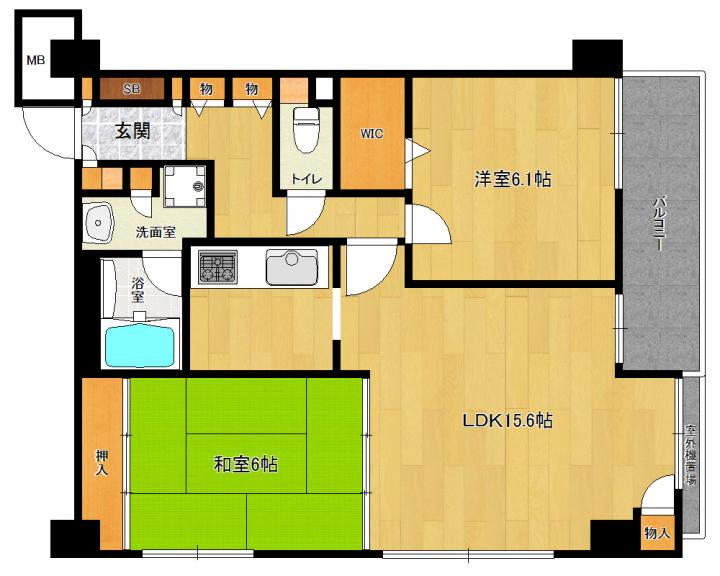 | 間取り詳細 | 洋6.1帖 和6帖 LDK15.6帖 |