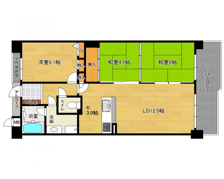 | 間取り詳細 | 和6帖 和4.5帖 洋6.1帖 LDK12.5帖 |