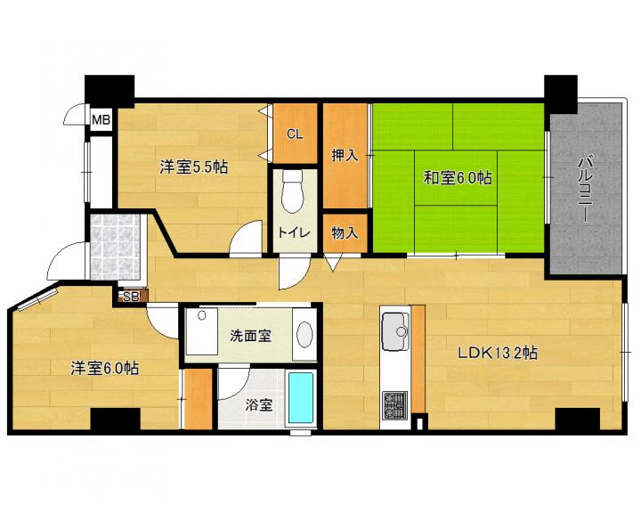 | 間取り詳細 | 和6.0帖 洋6.0帖 洋5.5帖 LDK13.2帖 |
