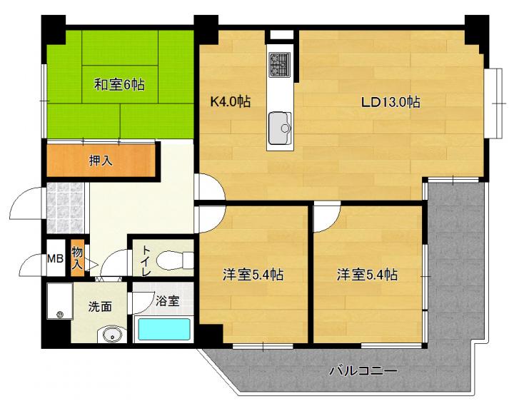 | 間取り詳細 | 和6.0帖 洋5.4帖 洋5.4帖 LD13.0帖 K4.0帖 |