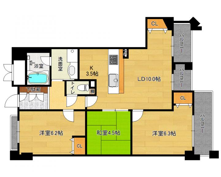 | 間取り詳細 | 和4.5帖 洋6.3帖 洋6.2帖 LD10.0帖 K3.5帖 |