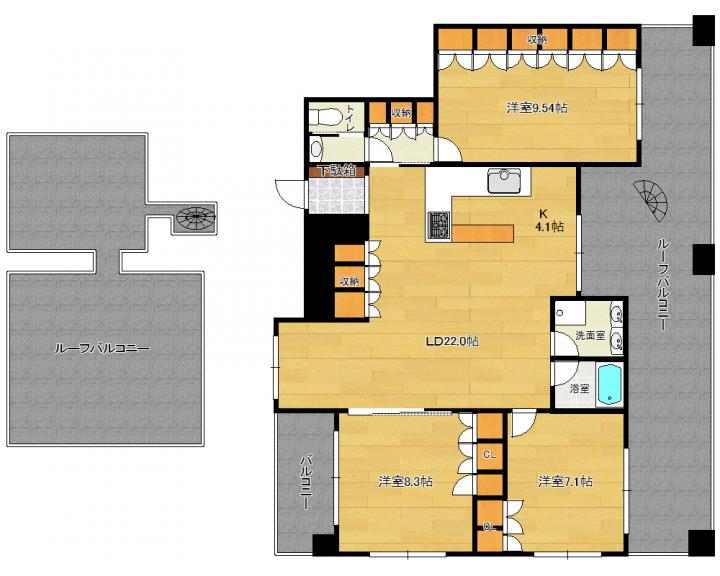 | 間取り詳細 | 洋9.5帖 洋8.3帖 洋7.1帖 LD22.0帖 K4.1帖 |