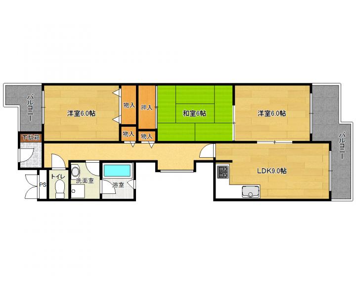 | 間取り詳細 | 和6.0帖 洋6.0帖 洋6.0帖 LDK6.0帖 |