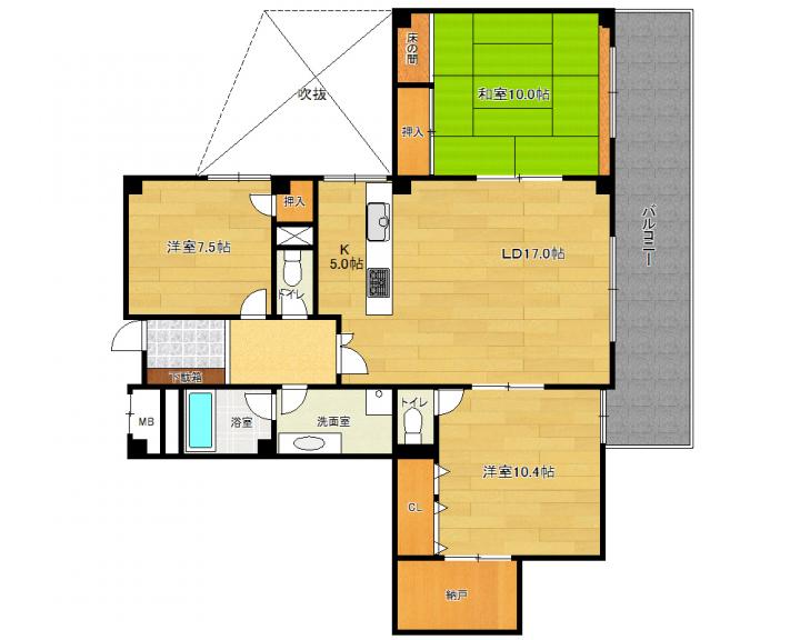 | 間取り詳細 | 和10.0帖 洋10.4帖 洋7.4帖 LD17.0帖 K5.0帖 |