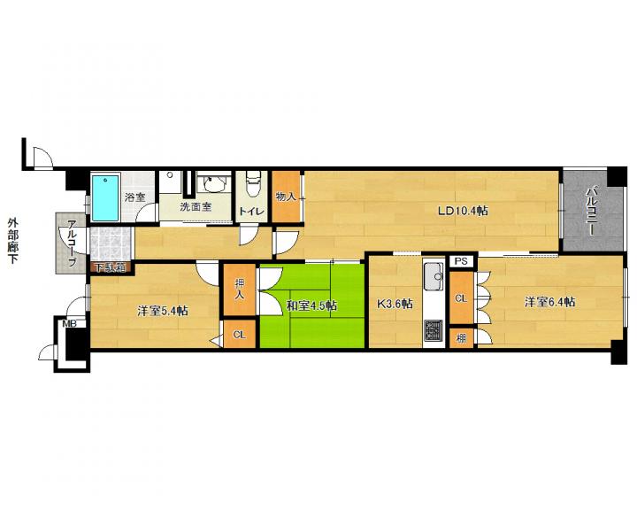 | 間取り詳細 | 和4.5帖 洋6.4帖 洋5.4帖 LD10.4帖 K3.6帖 |