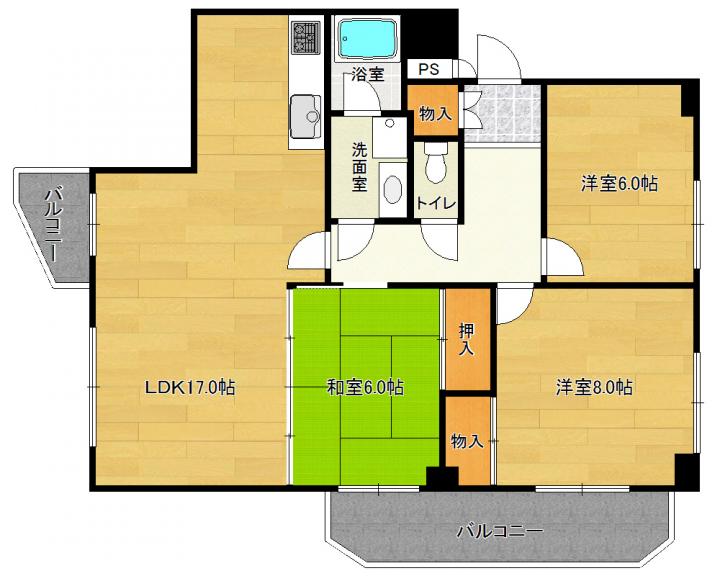 | 間取り詳細 | 和6.0帖 洋8.0帖 洋6.0帖 LDK17.0帖 |