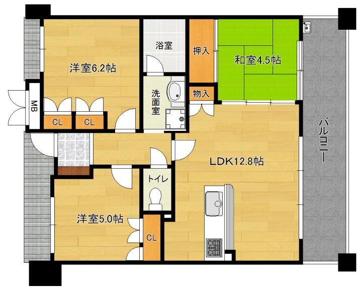 | 間取り詳細 | 和4.5帖 洋6.2帖 洋5.0帖 LDK12.8帖 |