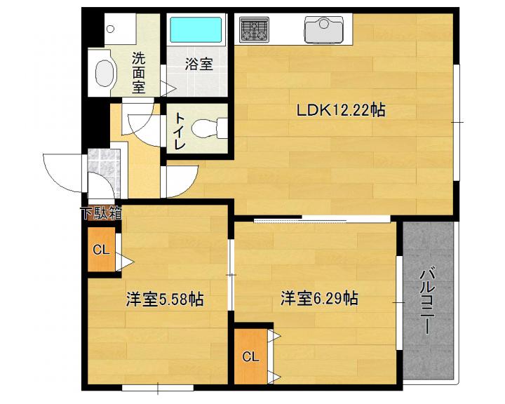 | 間取り詳細 | 洋6.29帖 洋5.58帖 LDK12.22帖 |
