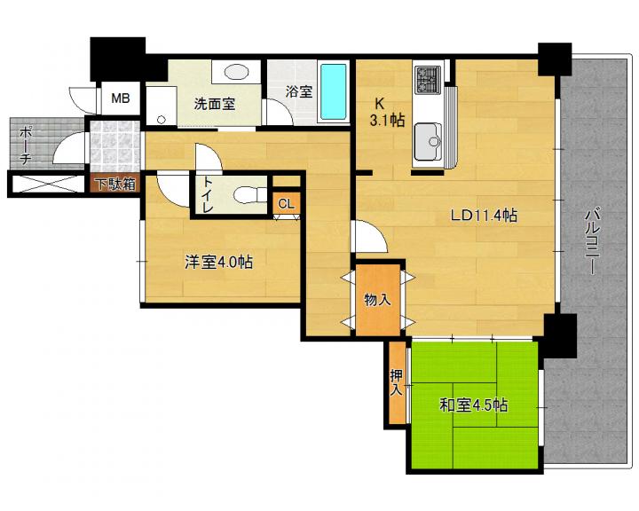 | 間取り詳細 | 和4.5帖 洋4.0帖 LD11.4帖 K3.1帖 |