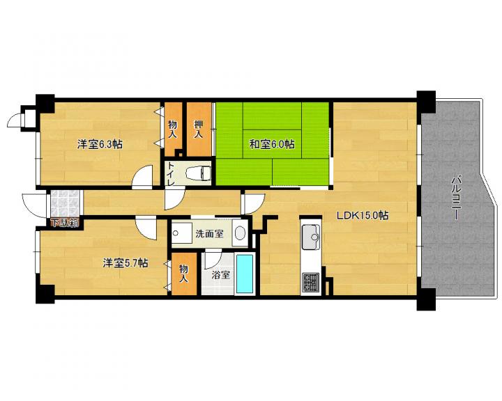 | 間取り詳細 | 和6.0帖 洋6.3帖 洋5.7帖 LDK15.0帖 |