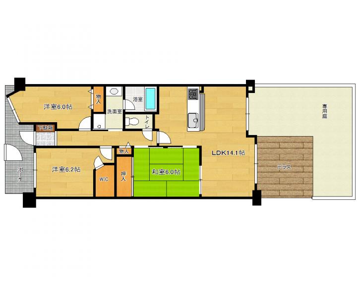| 間取り詳細 | 和6.0帖 洋6.2帖 洋6.0帖 LDK14.1帖 |
