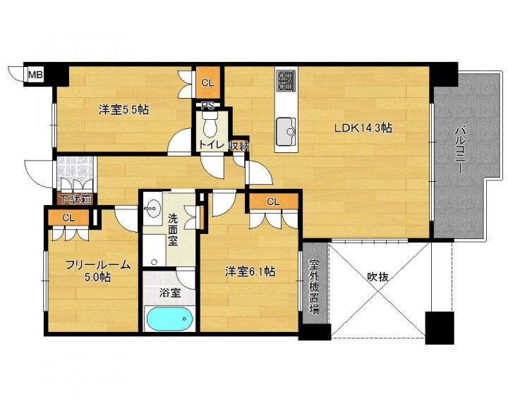 | 間取り詳細 | 洋6.1帖 洋5.5帖 洋5.0帖 LDK14.3帖 |