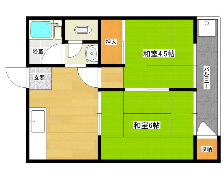| 間取り詳細 | 和室 6帖 和室 4.5帖 DK 6帖 |