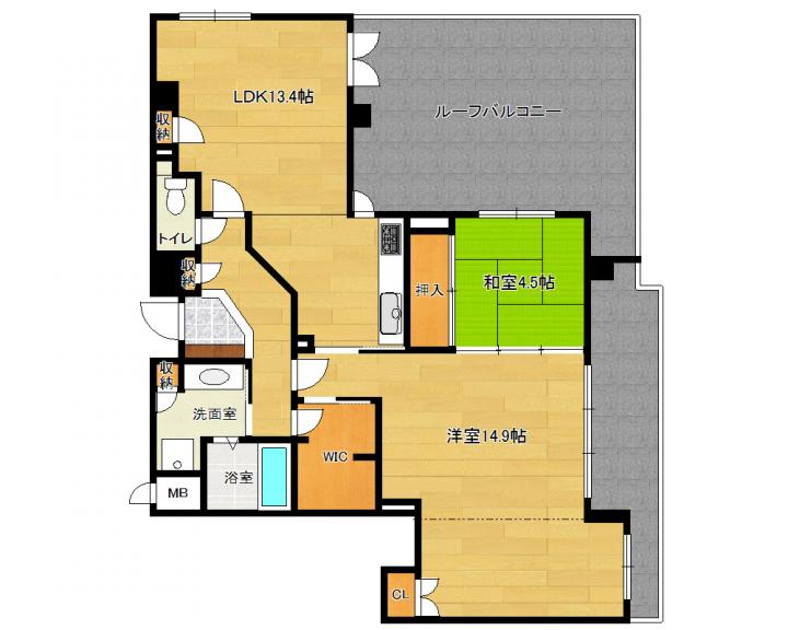 | 間取り詳細 | 和4.5帖 洋14.9 LDK13.4帖 |