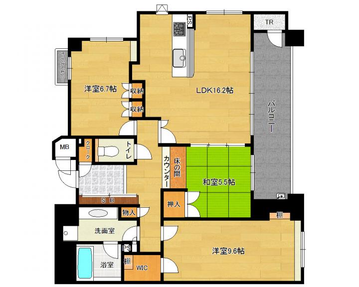 | 間取り詳細 | 和5.5帖 洋9.6帖 洋6.7帖 LDK16.2帖 |