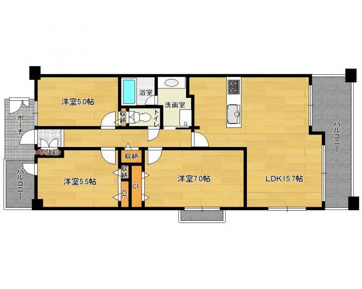 | 間取り詳細 | 洋7.0帖 洋5.5帖 洋5.0帖 LDK15.7帖 |