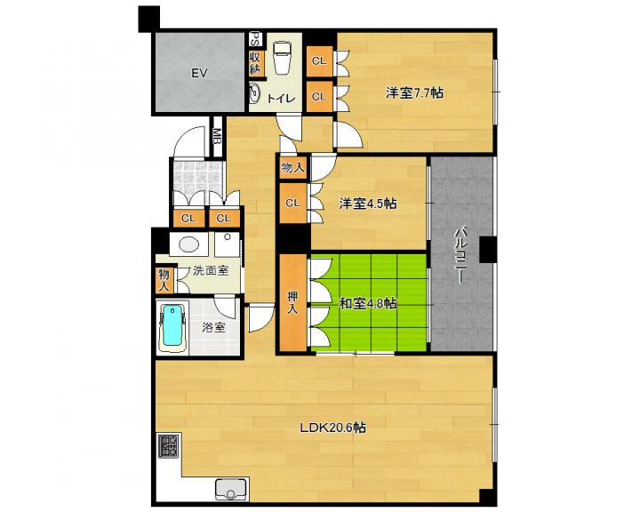 | 間取り詳細 | 和4.8帖 洋7.7帖 洋4.5帖 LDK20.6帖 |