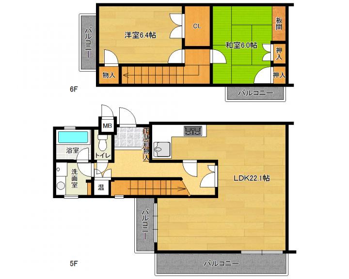 | 間取り詳細 | 和6.0帖 洋6.4帖 LDK22.1帖 |