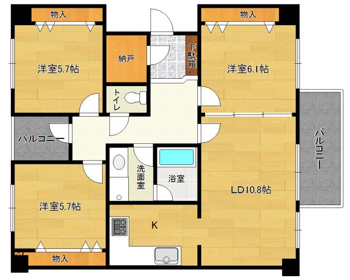 | 間取り詳細 | 洋6.1帖 洋5.7帖 洋5.7帖 LDK10.8帖 |