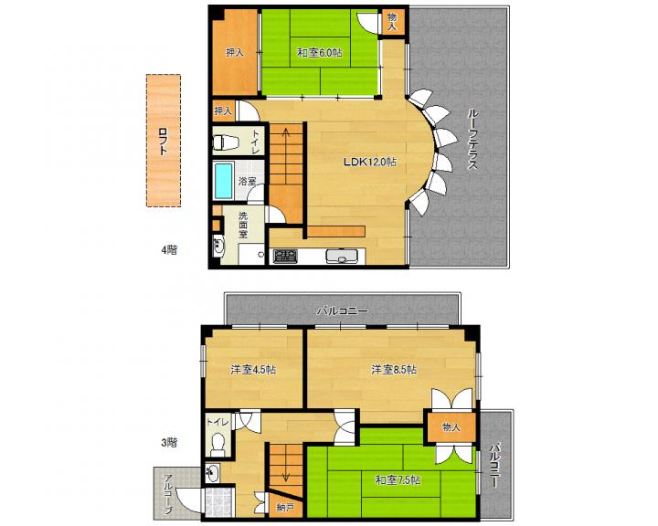 | 間取り詳細 | 和7.5帖 和6.0帖 洋8.5帖 洋4.5帖 LDK12.0帖 |