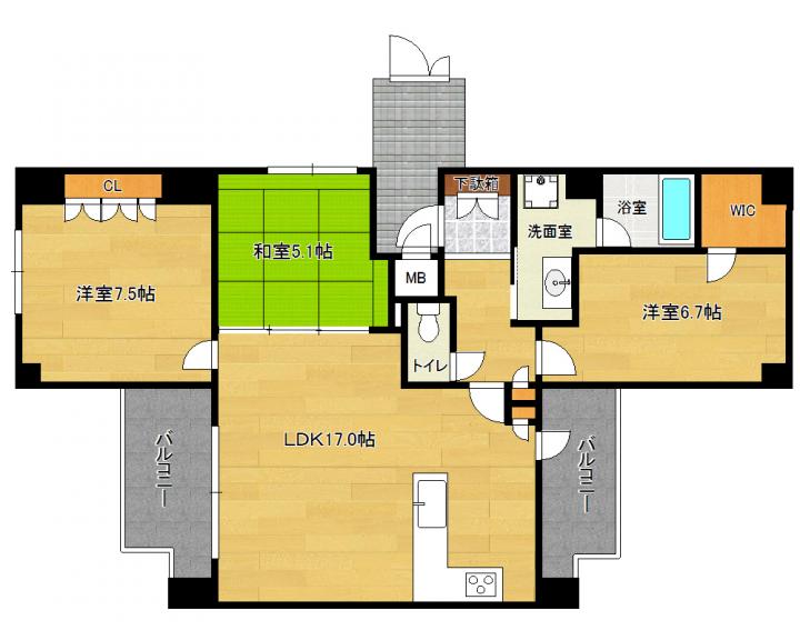 | 間取り詳細 | 和5.1帖 洋7.5帖 洋6.7帖 LDK17.0帖 |