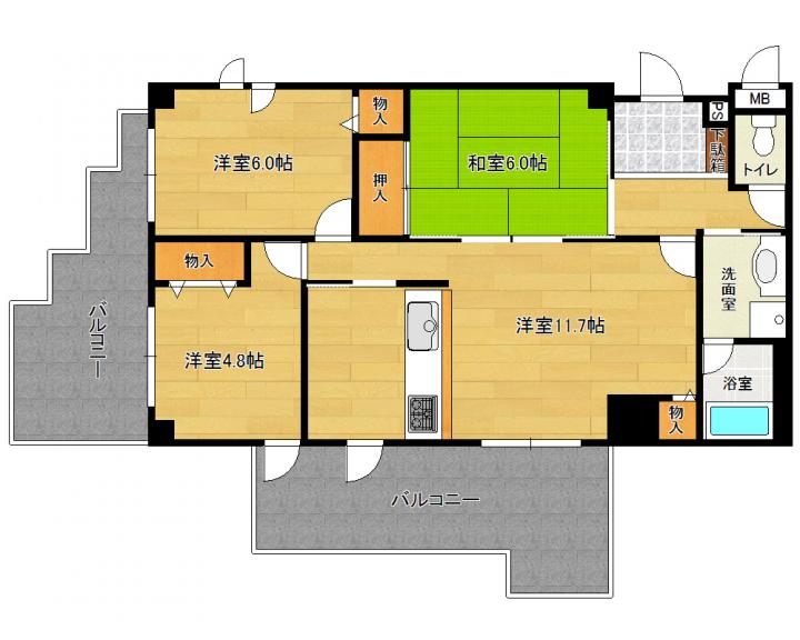 | 間取り詳細 | 和6.0帖 用6.0帖 洋4.8帖 LDK11.7帖 |