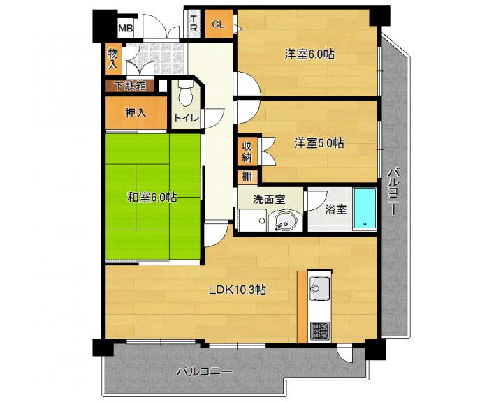 | 間取り詳細 | 和6.0帖 洋6.0帖 洋5.0帖 LDK10.3帖 |