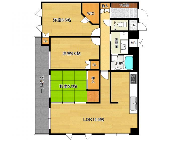 | 間取り詳細 | 和5.0帖 洋6.5帖 洋6.0帖 LDK16.5帖 |