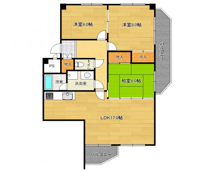 | 間取り詳細 | 和6.0帖 洋8.0帖 洋6.0帖 LDK17.0帖 |