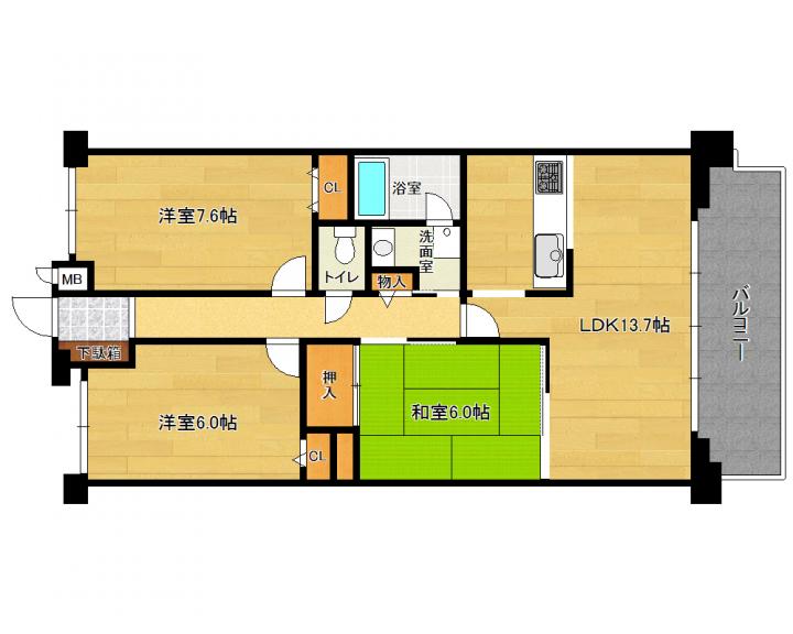 | 間取り詳細 | 和6.0帖 洋7.6帖 洋6.0帖 LDK13.7帖 |