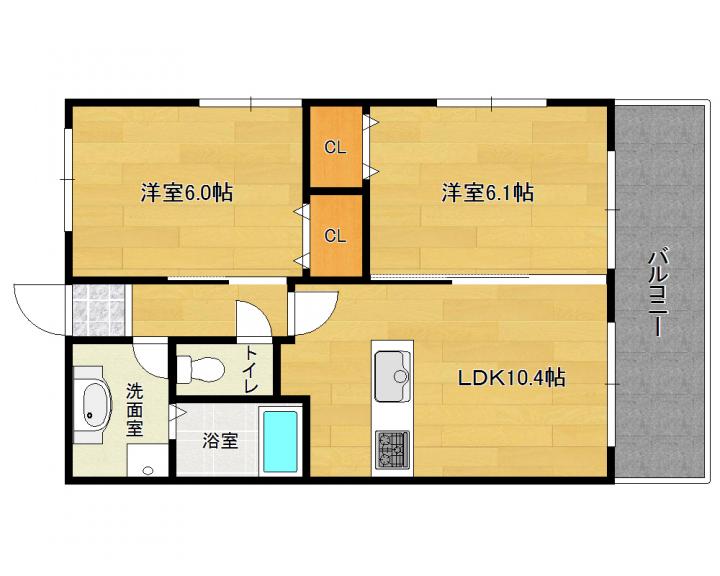 | 間取り詳細 | 洋6.1帖 洋6.0帖 LDK10.4帖 |