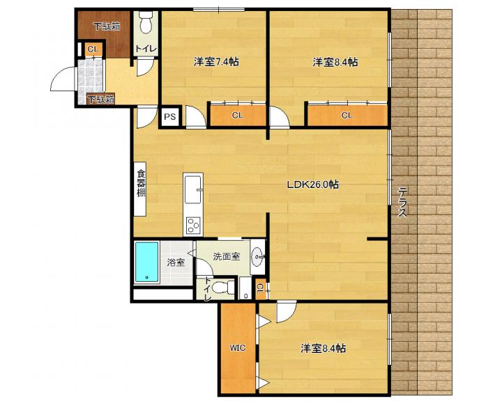 | 間取り詳細 | 洋8.4帖 洋8.0帖 洋7.4帖 LDK26.0帖 |
