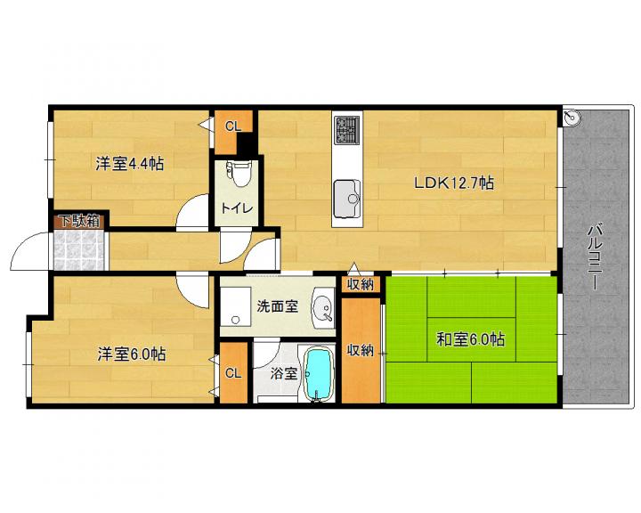| 間取り詳細 | 和6.0帖 洋6.0帖 洋4.4帖 LDK12.7帖 |