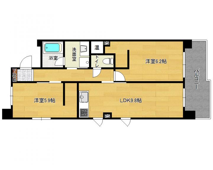 | 間取り詳細 | 洋6.2帖 洋5.9帖 LDK9.8帖 |