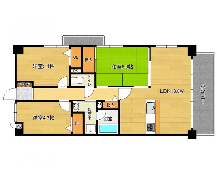 | 間取り詳細 | 和6.0帖 洋5.4帖 洋4.7帖 LDK13.8帖 |