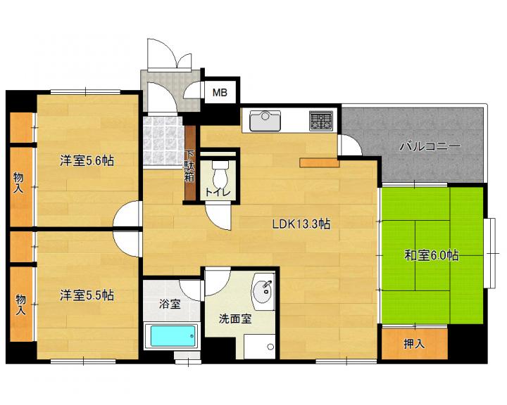 | 間取り詳細 | 和6.0帖 洋5.6帖 洋5.5帖 LDK13.3帖 |
