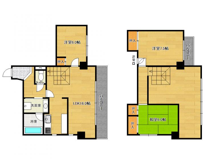 | 間取り詳細 | 和6.0帖 洋7.5帖 洋6.0帖 LDK16.0帖 |